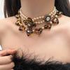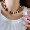 American Vintage Niche Design Pearl Neck Chain Leopard Print Bow Double Necklace Choker Women's Collarbone Chain