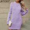 BITCED Autumn/Winter Twisted-Knit Mid-Length Knitted Dress Solid-Colour Slit-Hem Loose-Fit Pullover Women's Wool Dress