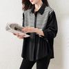 Experience timeless style with this women's long-sleeve shirt, crafted from a blend of cotton and linen. This solid color button-down features a round neckline and provides a versatile and elegant look suitable for any occasion. The shirt is uniquely enhanced with patchwork and quilted decorations, adding a touch of sophistication to your wardrobe.