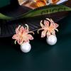 1 Pair of Fashionable Synthetic Zircon and Imitation Pearl Shell Flower Earrings, Fashionable French Retro Light Luxury Earrings