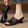 Retro Limp Heel Slippers for Women 2025 Summer New Square Toe Soft Leather Flip-flops Special-shaped Heels