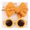 2Pcs/Set Soft Elastic Children Bowknot Headband Cotton Wide Baby Bows Turban Solid Color Kids Sunglasses Set Photography Prop