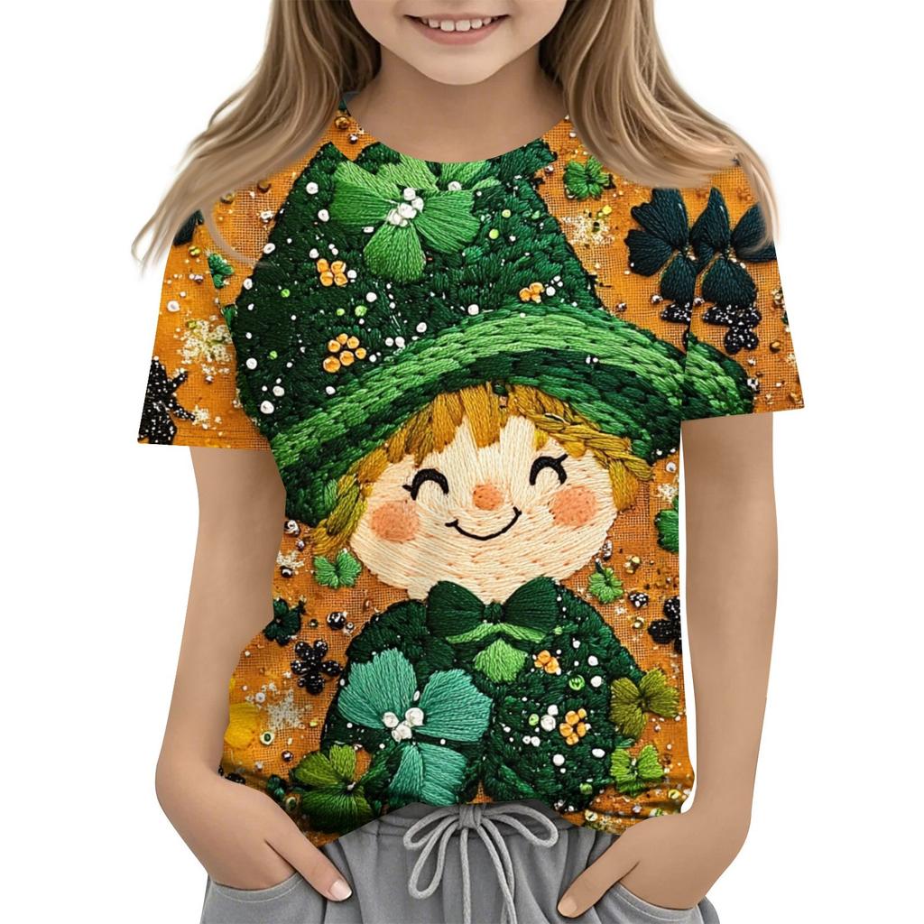 Cut Cartoon Mardi Gras Print T-Shirt Children's T Shirts Kids Girls Clothes Saint Patrick's Day Elsa Series Casual Tops Tees
