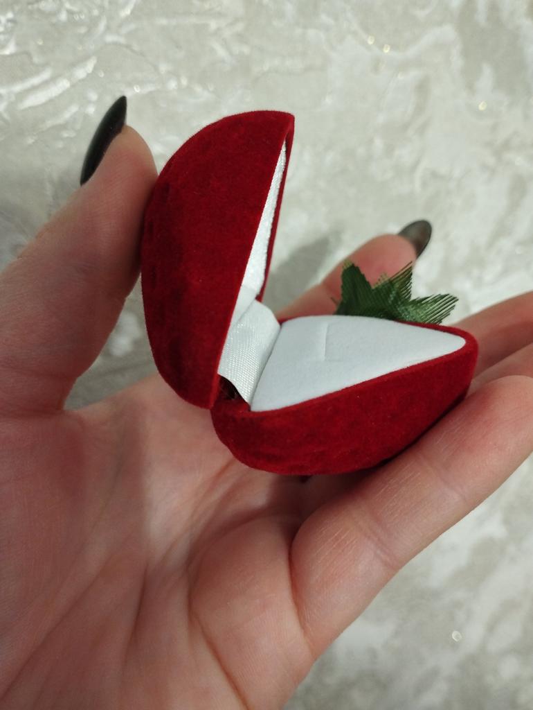 1 Stück neue Erdbeerform Samt Ring Aufbewahrungskoffer Schmuckschatulle Ringschutz Beflockung Geschenkbox