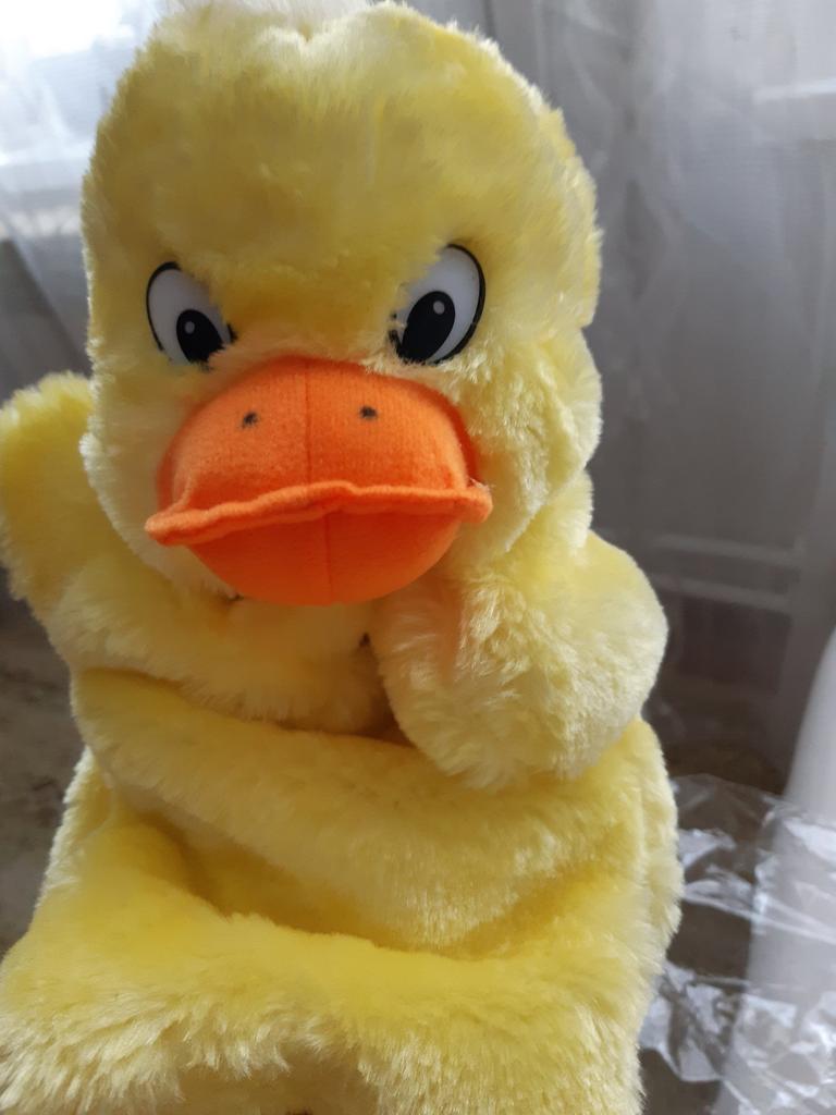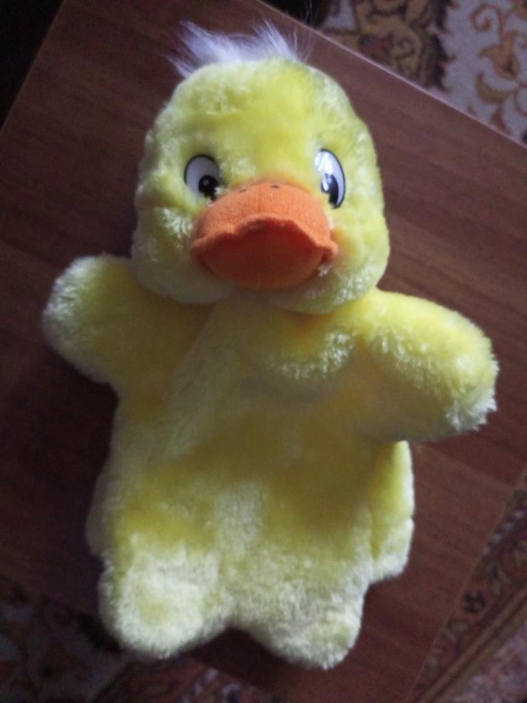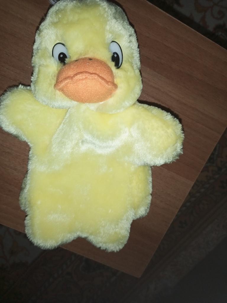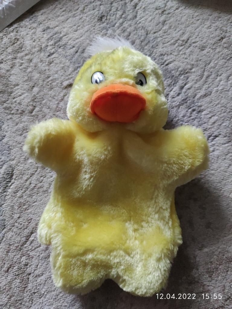 Niedliche Ente, wie auf dem Bild, weich. Gut genäht, für das Puppentheater.