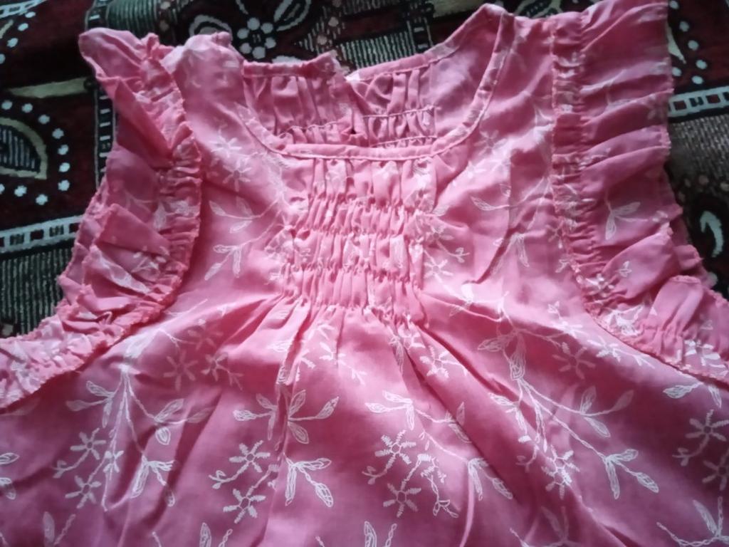 Die Farbe ist etwas anders, ansonsten ist das Aussehen gleich. Das Material ist gut, dünn, weich, Baumwolle sehr ähnlich, mit Stickerei. Tolles Kleid für den heißen Sommer. Die Größe ist klein, 100 passen einem Kind im Alter von 1,5 Jahren und einer Körpergröße von 80 cm