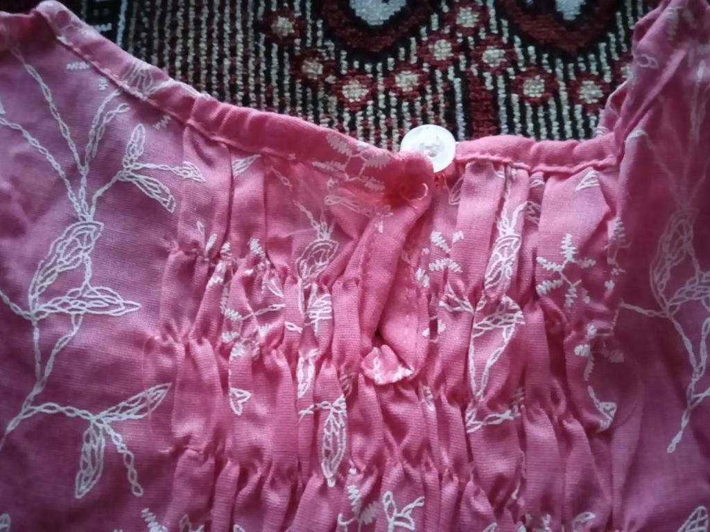 Die Farbe ist etwas anders, ansonsten ist das Aussehen gleich. Das Material ist gut, dünn, weich, Baumwolle sehr ähnlich, mit Stickerei. Tolles Kleid für den heißen Sommer. Die Größe ist klein, 130 passen einem Kind im Alter von 5 Jahren mit einer Körpergröße von 110 cm.