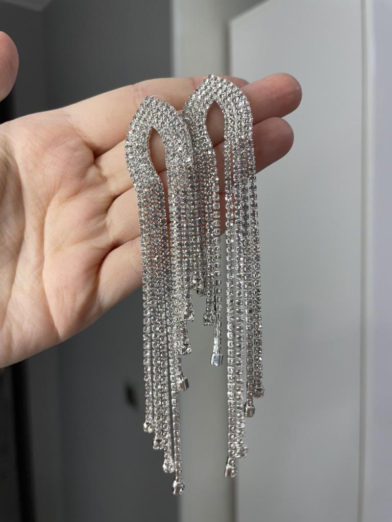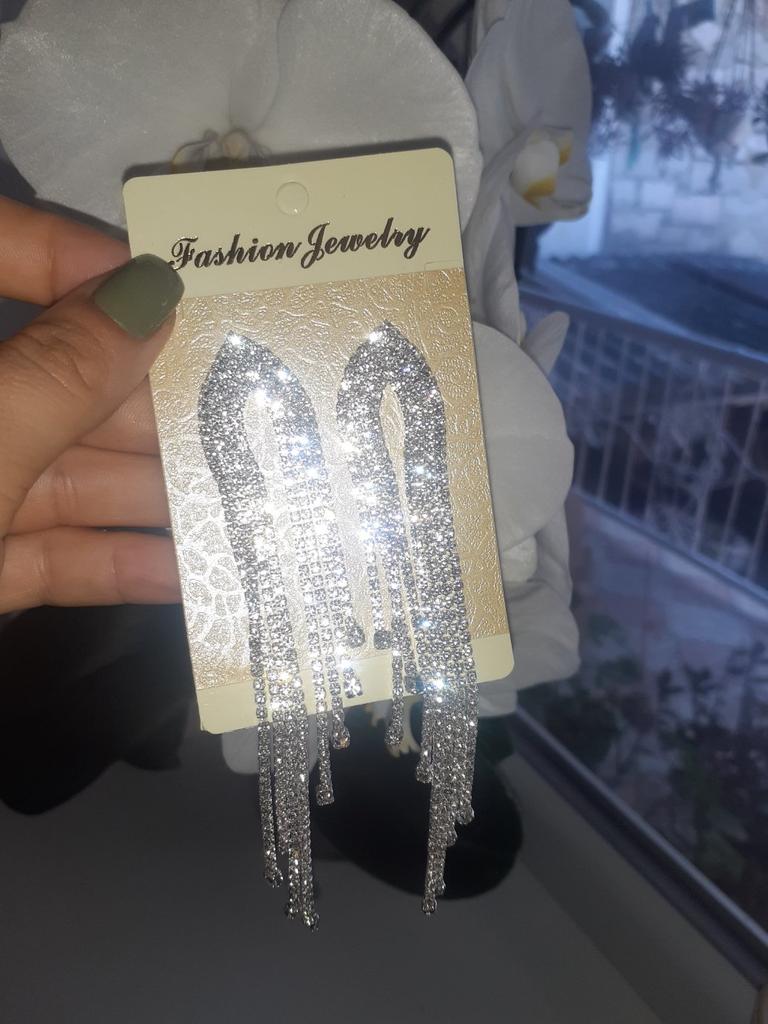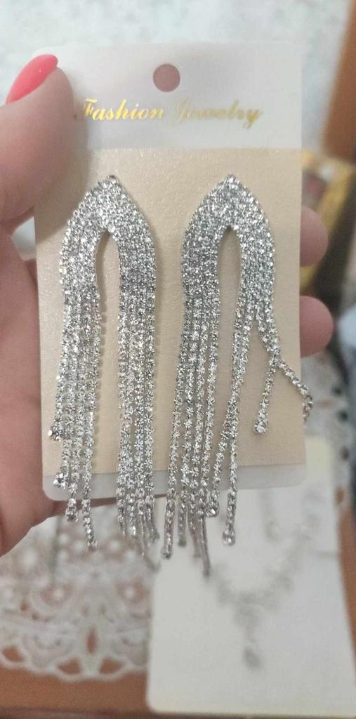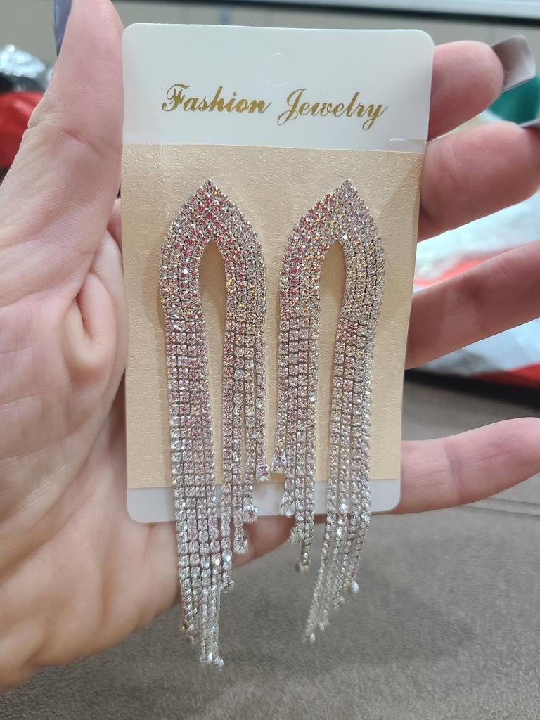 Lange Strass-Ohrringe Sie haben meine Erwartungen übertroffen. Sehr funkelnd und elegant und ich bin sehr zufrieden mit diesem Kauf. Ich habe viele große funkelnde Ohrringe, aber diese sind am leichtesten Kann sie lange tragen, ohne den Druck der Ohrringe zu spüren, und jedes Stück ist weich und bequem Es besteht aus Kristall und Strass, eingefasst in wunderschönes silberfarbenes Metall, die Ohrringe glänzen mit Anmut und Schönheit. Und die Metalloberfläche ist hochglanzpoliert. Diese eignen sich hervorragend für verschiedene Anlässe, können aber besonders auf einer Nachtparty, einem Abschlussball, einer Verabredungsnacht oder zu besonderen Anlässen getragen werden, wenn sie leuchten und leuchten! Es wurde mir in 17 Tagen ohne Mängel geliefert👍👍