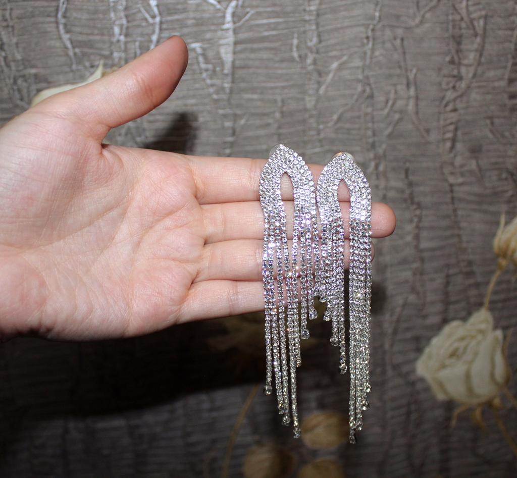 Frauen strass Lange Stromlinienförmigen Quaste ohrring Kristall Ohrringe Frau Mädchen Schmuck Pendante Femme