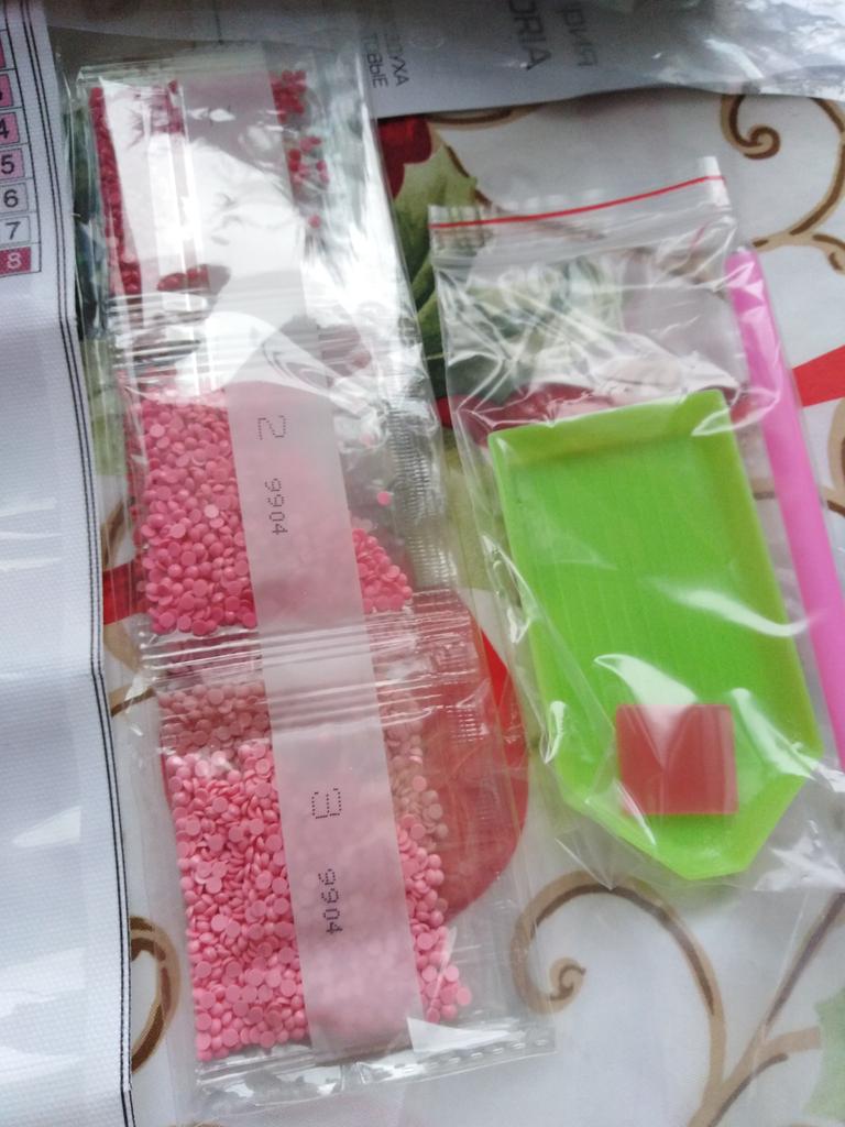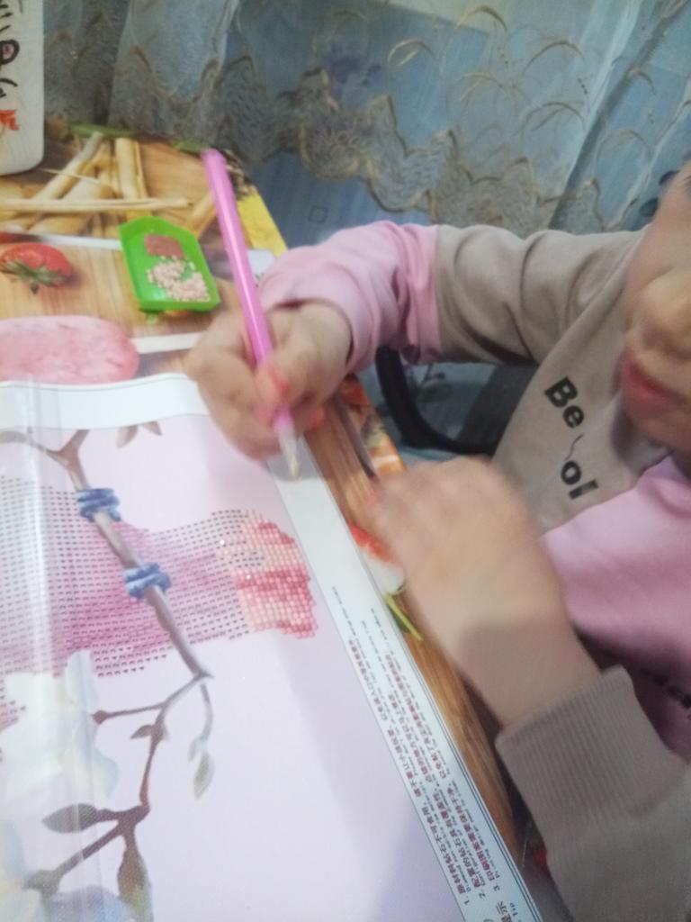 Ein wenig enttäuscht, weil ich das Material nicht erhalten habe, das auf dem Foto einen einfachen rosa Stift hatte, aber hübsche Diamantmalerei kann es kaum erwarten, es zu tun