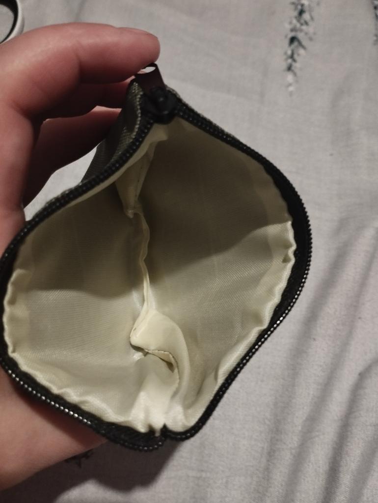 Klein, sehr praktisch zum Aufbewahren von Geld. Nimmt nicht viel Platz ein