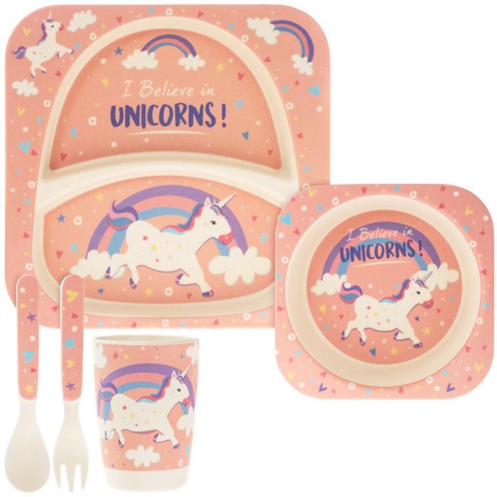 Les Trésors De Lily [Q2794] - Set repas enfant bambou 'Licorne My Unicorn' (I believe in Unicorns) - (5 pièces)