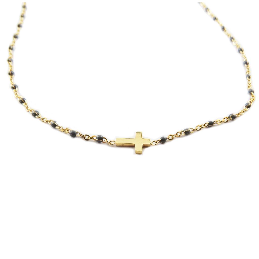 Les Trésors De Lily [R0221] - Designer-Halskette „Kreuz“ aus goldgrauem Stahl – 10 x 5 mm