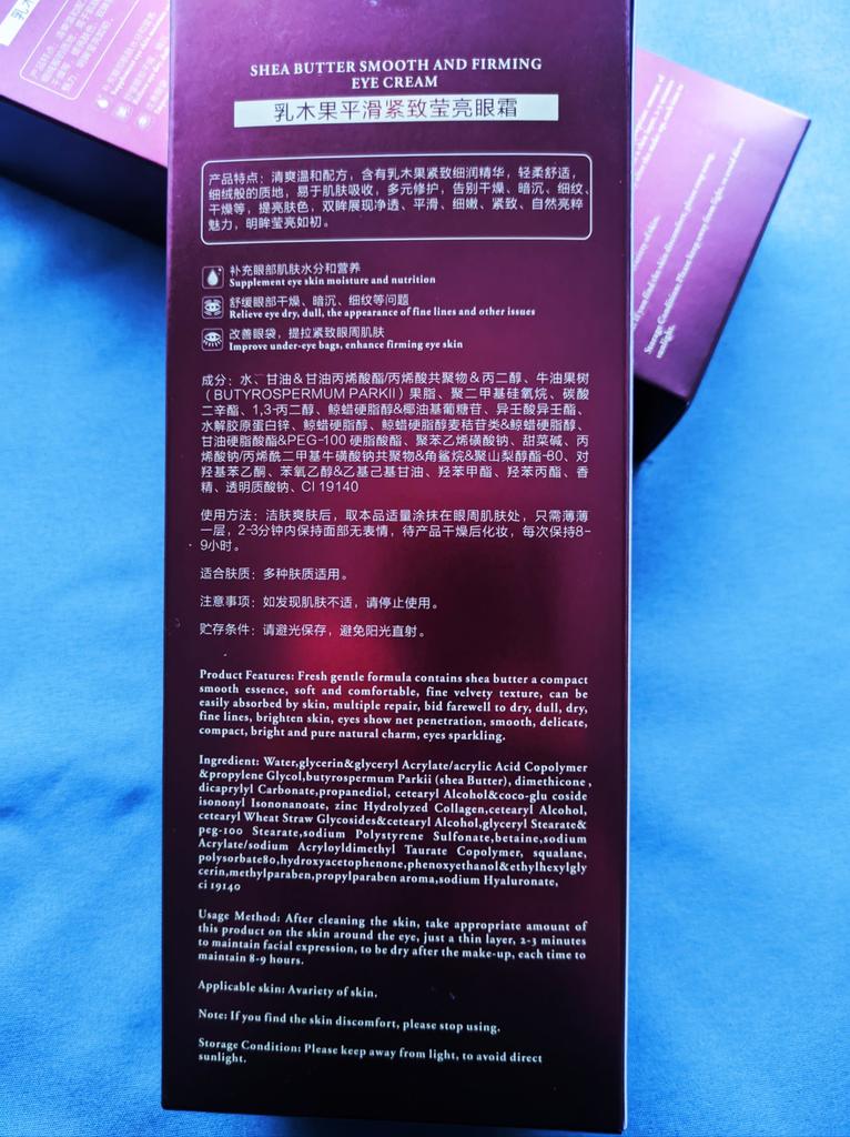 SHEA BUTTER SMOOTH STRAFFENDE AUGENCREME von MeiYanQiong ! ❤️ Es tut so gut, sich um seine Haut zu kümmern! Dies entfernt dunkle Ringe um die Augen. Anwendungsmethode: Nach der Reinigung der Haut eine angemessene Menge des Produkts auf die Haut um das Auge auftragen, nur eine dünne Schicht, 2-3 Minuten, um den Gesichtsausdruck zu erhalten, nach dem Make-up trocken zu sein, jedes Mal, um 8-9 aufrechtzuerhalten Std.. Es riecht so gut und es ist so weich ! Sie können damit auch Ihr Gesicht massieren ! Die Lieferung nach Griechenland dauerte einen Monat. 🇩🇪 Einfach mitzunehmen! Außerdem hat der Verkäufer einige kostenlose Cremeproben als Geschenk hinzugefügt! 100% empfehlenswert 💯 Liebe es ! ❤️ Vielen Dank und ich liebe dich MeiYanQiong und Joom ! ❤
