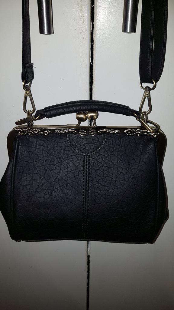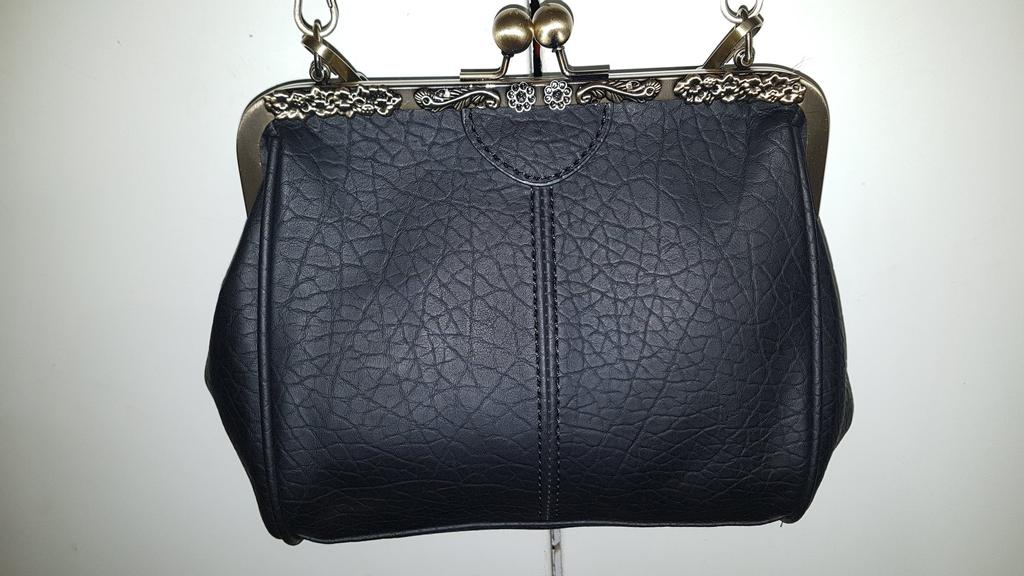 Perfekte Größe und angenehm zu tragen und sehr hübsch mit einem Verschluss zum Schließen und Öffnen, im Vintage-Stil, obwohl das Material seltsam riecht. Ich hoffe, dass es verschwindet, wenn ich es an die Luft gebe.