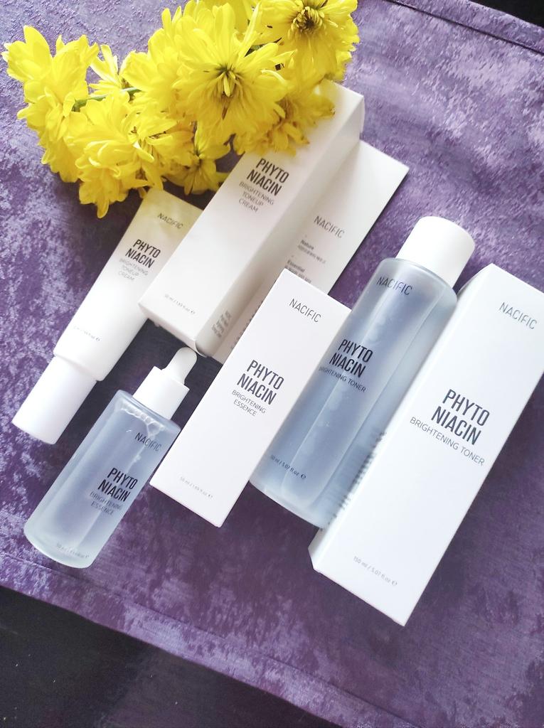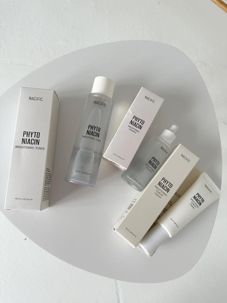 Set zur Hautaufhellung: Gesichtswasser 150 ml, Serum 50 ml und Creme 50 ml