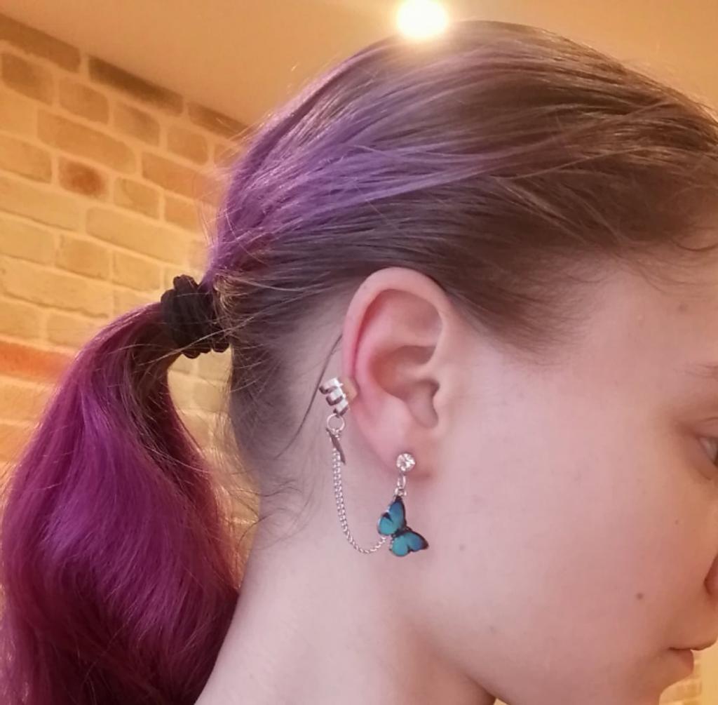 1 Stück baumeln Clip Ohrstecker Punk Ohr Schmetterling Kette Ohrring Party Schmuck