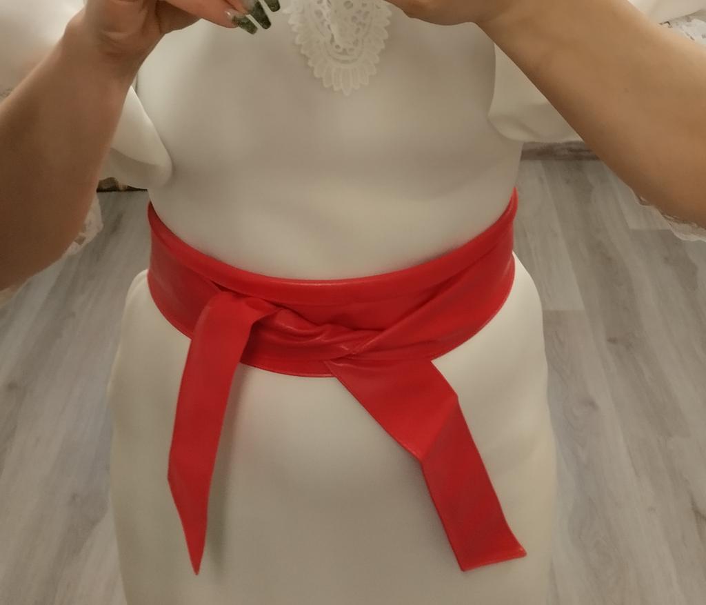 Schöner, weicher, langer Gürtel. Kann an einem Rock, einem Kleid oder einem leichten Mantel verwendet werden