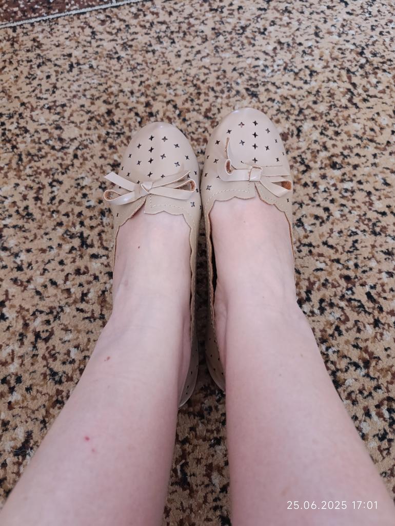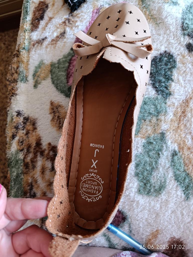 Ausgezeichnete Schuhe. Weich, bequem! Aber ..Mit 39 habe ich Größe 40 genommen. M A L Y.!!! Wenn ich 41 wäre, würde ich es auf jeden Fall wieder bestellen!