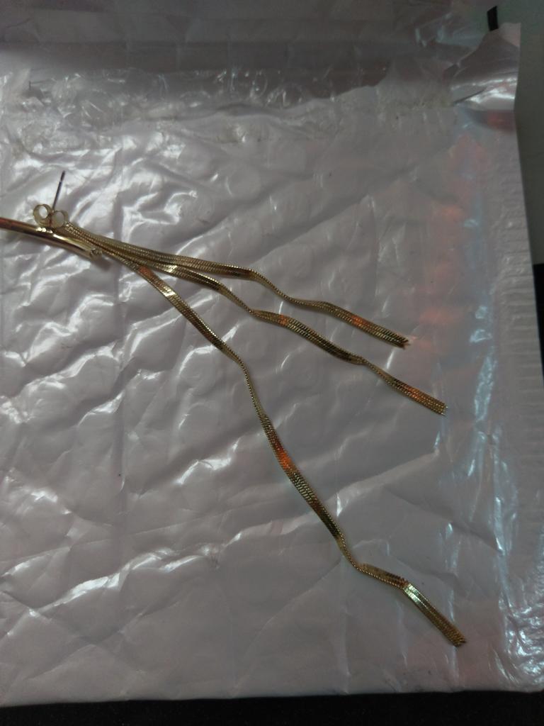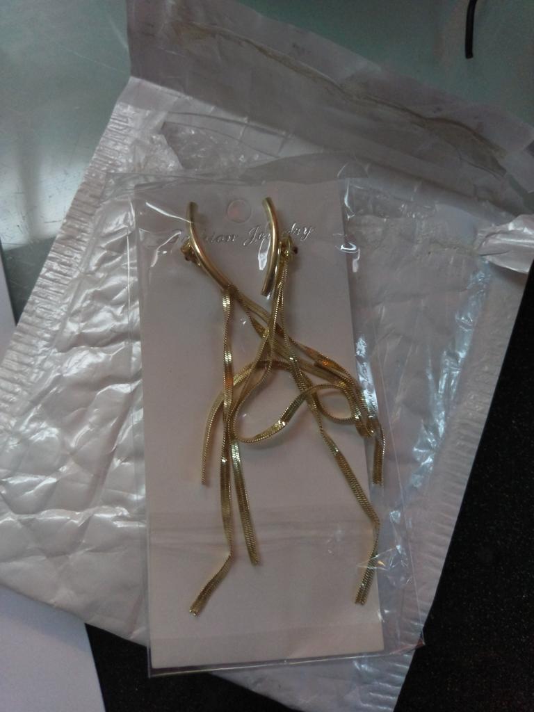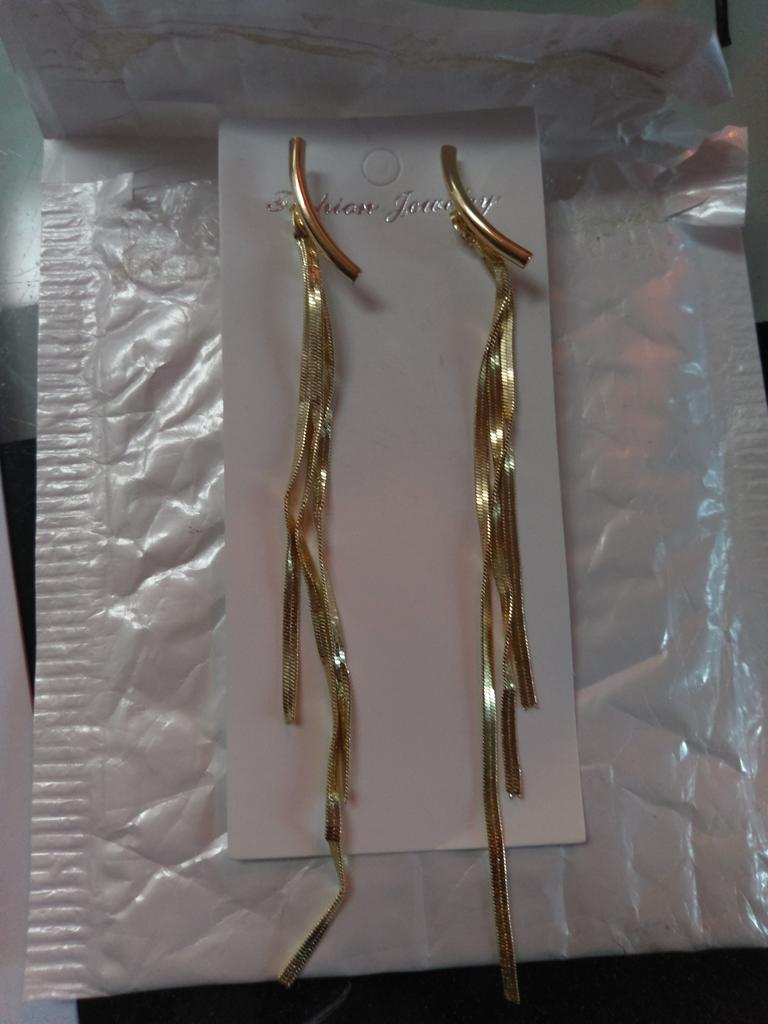 Die Idee ist gut, aber der halbmondförmige Steg ist viel zu lang. Der schmeichelt nicht dem Ohrläppchen, sondern geht Richtung Wange hinaus und sieht deswegen völlig deplatziert aus. 🙈 Die 3 Goldfäden an sich sind schön gearbeitet. Sieht leider recht unecht aus. Werde ich leider nicht tragen oder nur mit offenen langen Haaren, wo man die Banane nicht sieht dass sie einfach zu lang ist. Sieht halt witzig aus. Nicht edel oder elegant wie auf den Produktbildern. Immer das gleiche. Kaufe nix mehr bei joom.