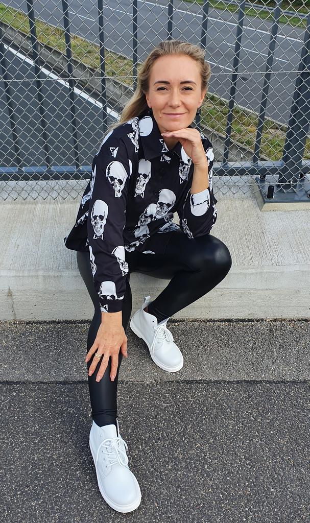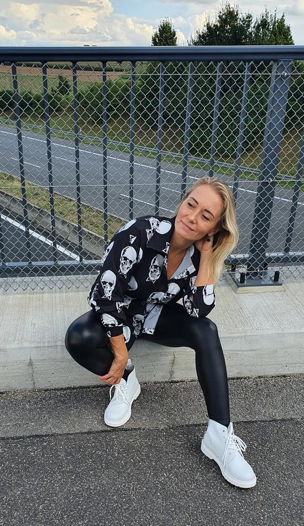 💀 Rockiger Hemd mit Schädeldruck 💀🤟 Für mich persönlich hat der Schädel keine furchteinfößende Funktion, sondern ist mehr ein Symbol für meine Arbeit, da ich 17 Jahre in der Orthopädie gearbeitet habe 😘 Hallo meine Lieben 🤗 Für alle jungen und junggebliebenen Mädchen empfehle ich dieses Hemd sich auf jeden Fall näher anzuschauen 🙌😉 💀 Größe: Die Größentabelle des Verkäufers stimmt. Ich habe M bestellt, das Hemd passt perfekt, nicht zu eng. Meine Maße sind 90-69-93cm. Ich bin 156 cm groß. Ärmel haben eine perfekte Länge. 💀 Material: Synthetik, siehe Etikett. Fühlt sich sehr angenehm auf der Haut an. Ist nicht durchsichtig, lässt sich gut bügeln, elektrisiert nicht, seidenähnlich. 💀 Optik: Viele Kombination z.B. mit Lederrock, Lederhose oder Leggins, auch mit weißen Shorts 👌 💀 Qualität: Alles perfekt. Ich bin mit dem Hemd sehr zufrieden und kann es auf jeden Fall weiterempfehlen. Euere Inge 💀🤟
