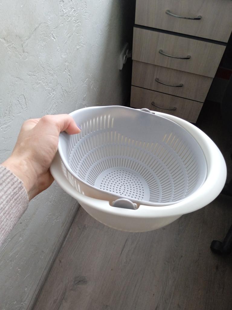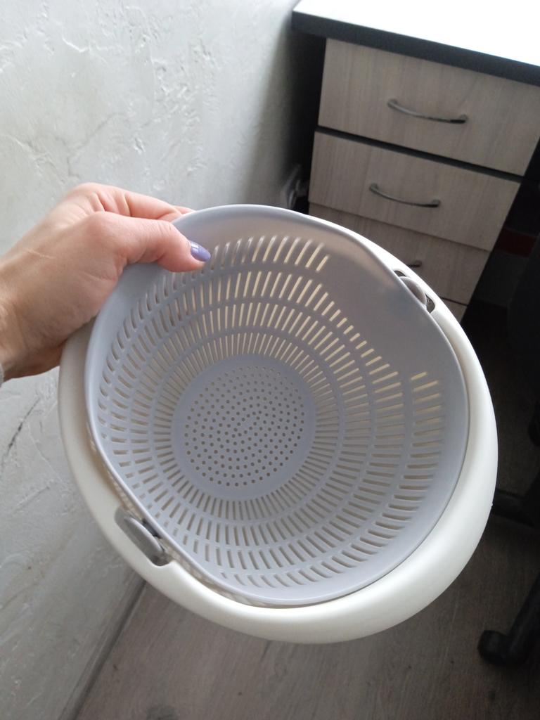 Tolle Schüssel. Es ist sehr praktisch, Obst, Gemüse und Müsli zu waschen. Alle meine Haushaltsmitglieder nutzen es gerne und sind zufrieden. Ich empfehle!