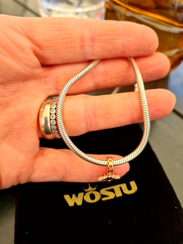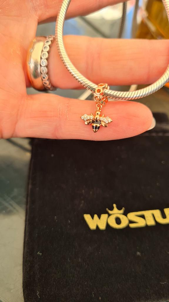 WOSTU Niedlicher kleiner Biene-Charm aus echtem 925er-Sterlingsilber für Original-Armband, Marken-Silberschmuck