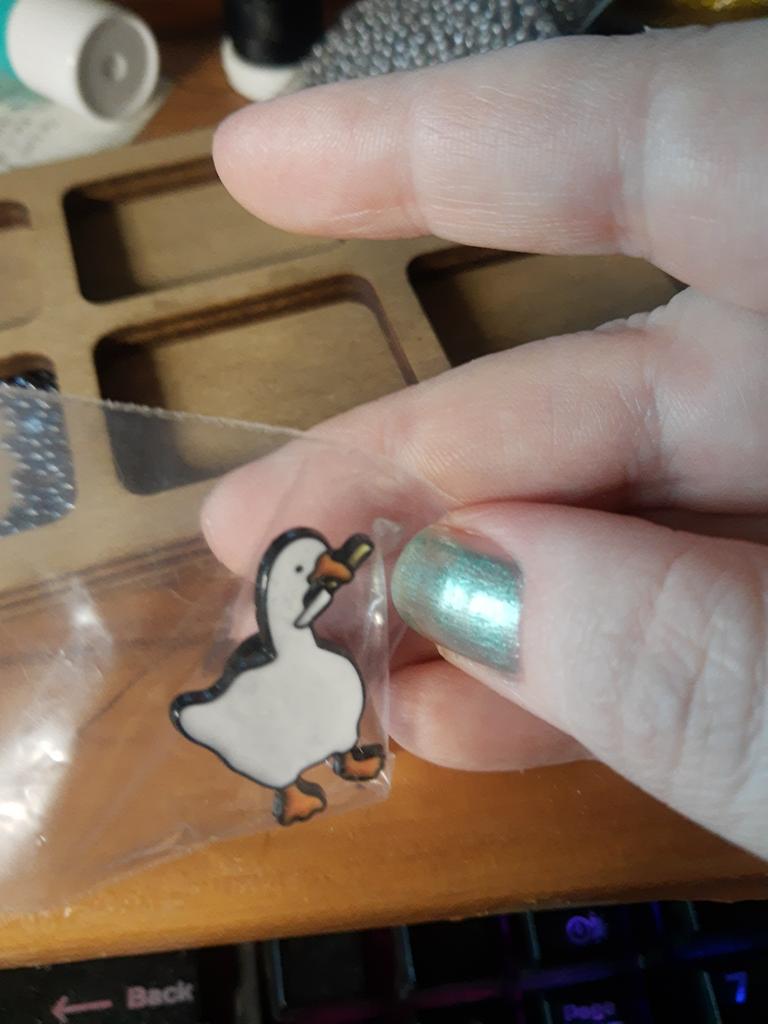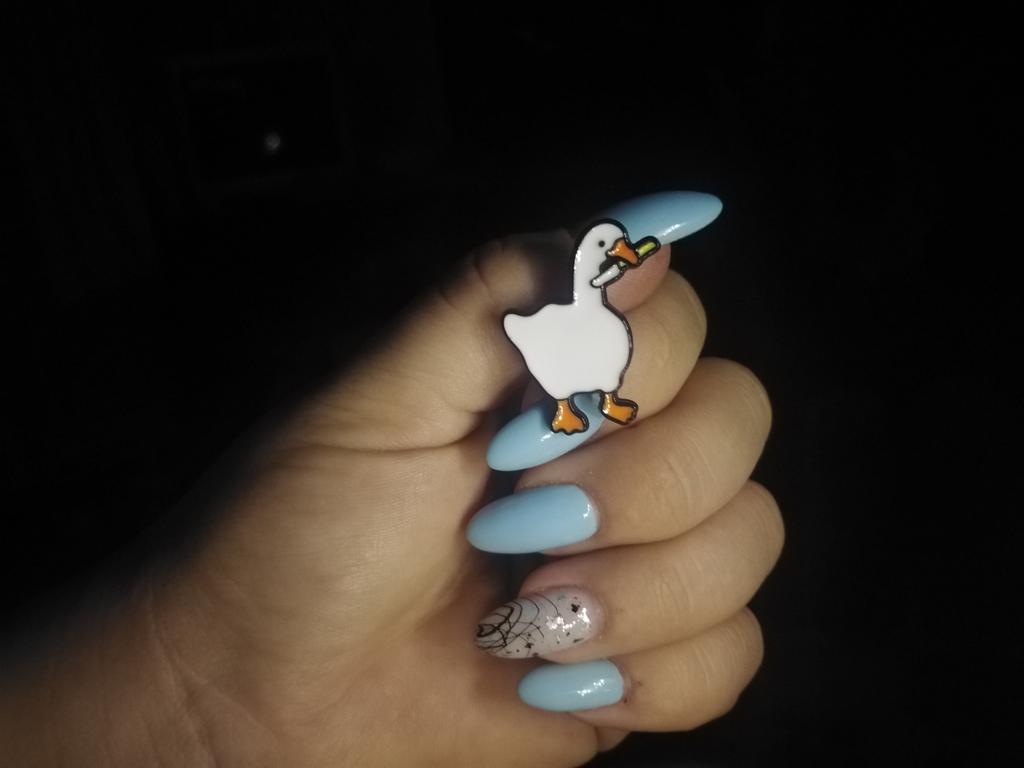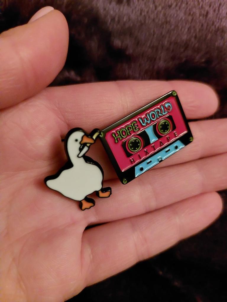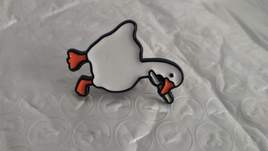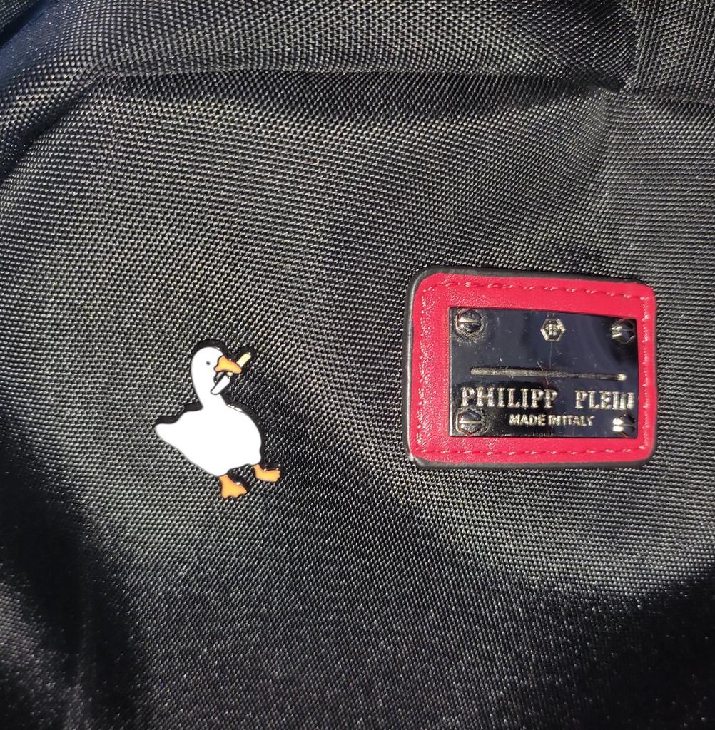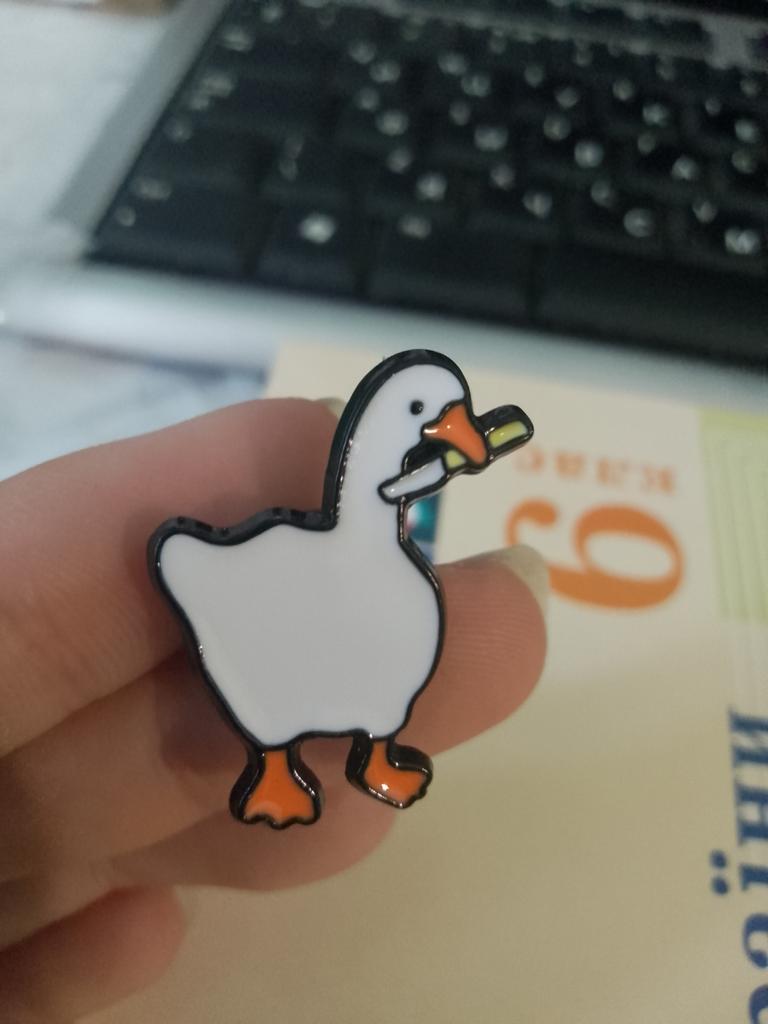 Ich habe vorhin eine Gans bestellt, aber meine jüngere Schwester hat sie weggenommen. Ich mag alles. Ich habe eine kleine und süße Anstecknadel an meiner Jeans.