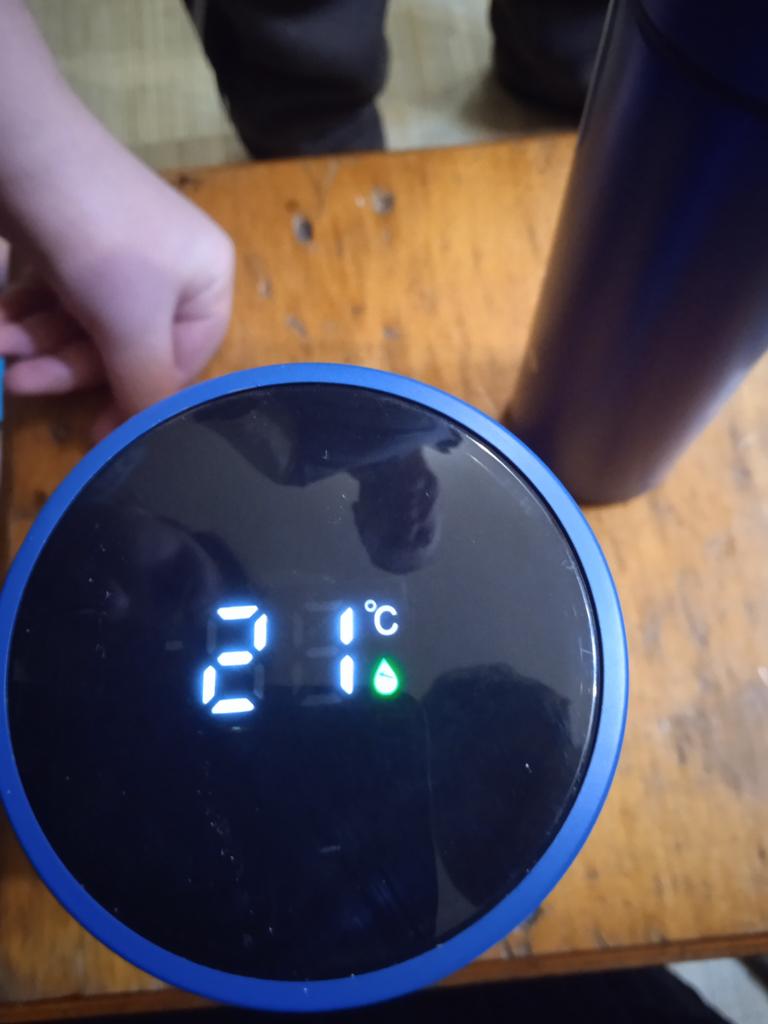 Coole Thermoskanne. Es zeigt die Temperatur korrekt an, nicht kaputt, klein, kompakt, nach 12 Stunden war das Getränk heiß. Ich empfehle)))