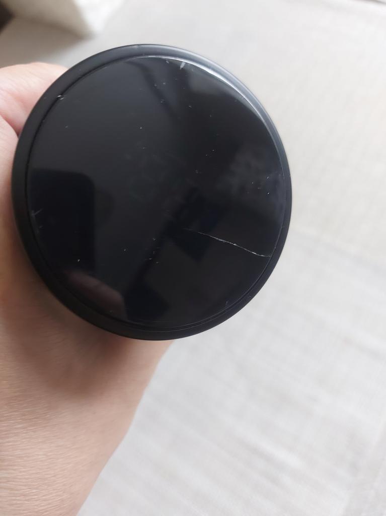 Ich weiß nicht, ob Sie es sehen können, aber auf der Oberseite der Abdeckung, dem Bildschirm, gibt es einen Riss von etwa der Hälfte des Durchmessers.