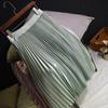 Langer Rock für Damen, Japan, Metallic-Satin, Orgelfaltenrock, A-Linien-Rock, hohe elastische Taille, mittellang