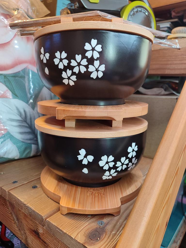 1000 ml japanische Reisnudelschüssel mit Deckel, Löffel und Essstäbchen, Küchengeschirr, Keramik, Salat, Suppenschüssel, Lebensmittelbehälter, Geschirr