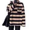 Gestreiftes bedrucktes T-Shirt für Damen und Herren, langärmelig, übergroße Tops, lässige Paar-T-Shirts