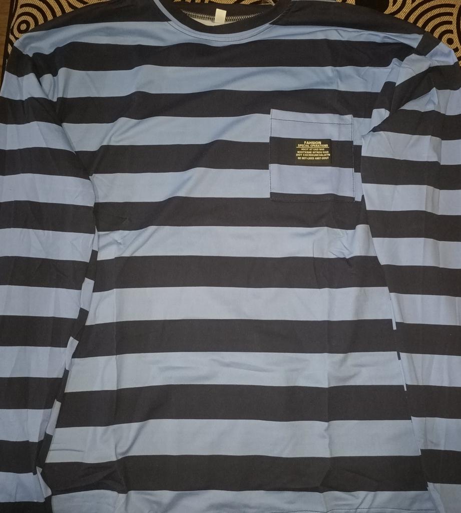 Das T-Shirt ist cool, schön am Körper, aber die Fäden kommen sehr heraus. Und die Farbe der Streifen auf dem Foto scheint schwarz zu sein, ist aber tatsächlich grau