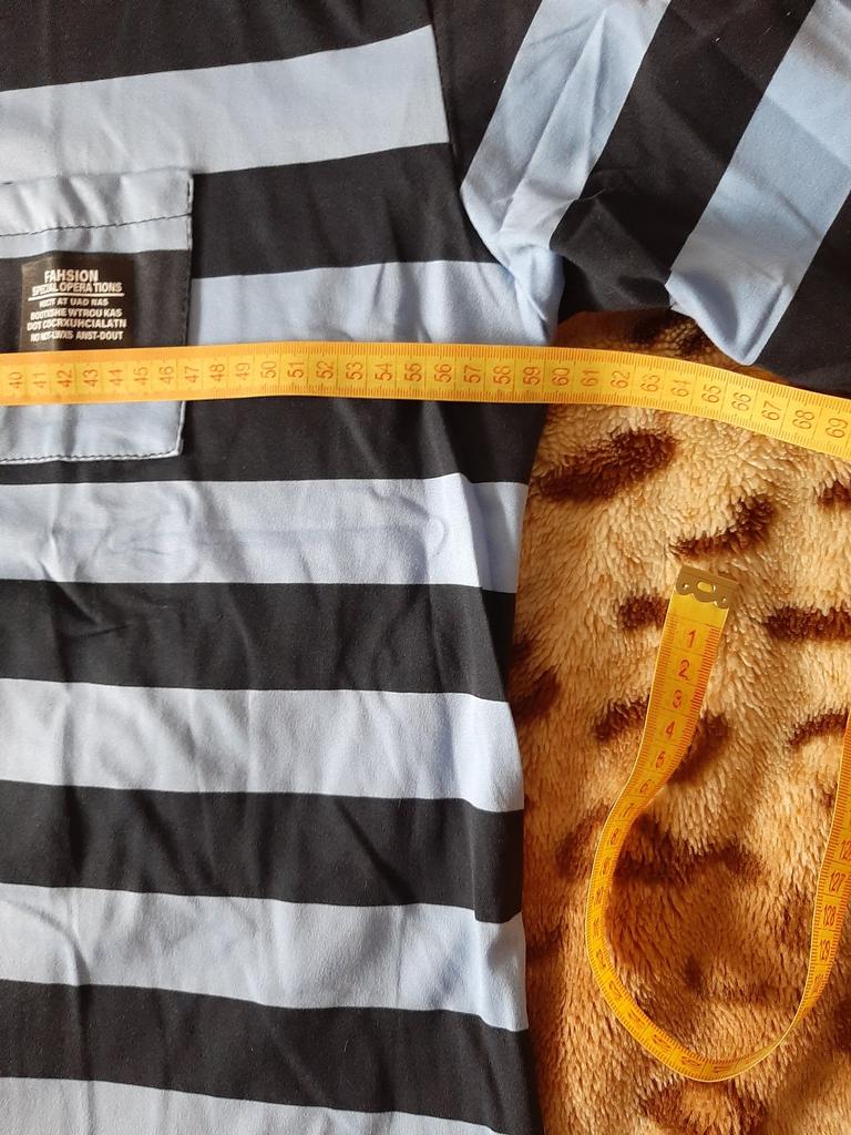 Das T-Shirt entspricht nicht der angegebenen Länge, es ist 65 cm statt 70 in Größe L, an der Brust 116 cm statt 122 cm. Die Tasche ist schief genäht, so geschnitten, dass beim Nähen die Streifen nicht gerade sind. aber geh in ein Grundnahrungsmittel! Ich empfehle das Produkt nicht.