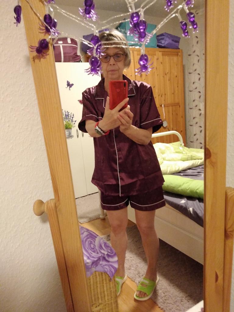 Fabelhafter Pyjama-Satin-Look! 💁♀️💜 Ich liebe es!! Passt perfekt. Nehmen Sie Ihre übliche Größe. Bestellung kam in 16 Tagen zu Hause an. Ich rate 👍 mit Rabatt kaufen: 825ZG9MLSI