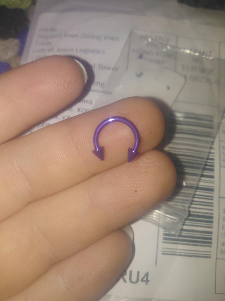 Als Ohrschmuck verwendet. Für Lippenpiercing ist es für mich sperrig. Beim ersten Mal ist es schwierig, den Dorn abzuschrauben. Die Beschichtung hält gut, allerdings empfehle ich nicht, den Bolzen mit einer Zange herauszuschrauben, da die Beschichtung auf diese Weise sehr leicht beschädigt werden kann. Ich trage es seit dem achten Monat. In dieser Zeit ein Kratzer und das wars. Ich empfehle. Die Lieferung dauerte lange, aber es war auf militärische Aktionen zurückzuführen, also denke ich, dass es jetzt nicht so lange dauern wird.