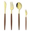 4Pcs Gold Besteck Set Edelstahl Geschirr Holzgriff Geschirr Glänzend Messer Gabel Löffel Westlichen Küche Besteck Set