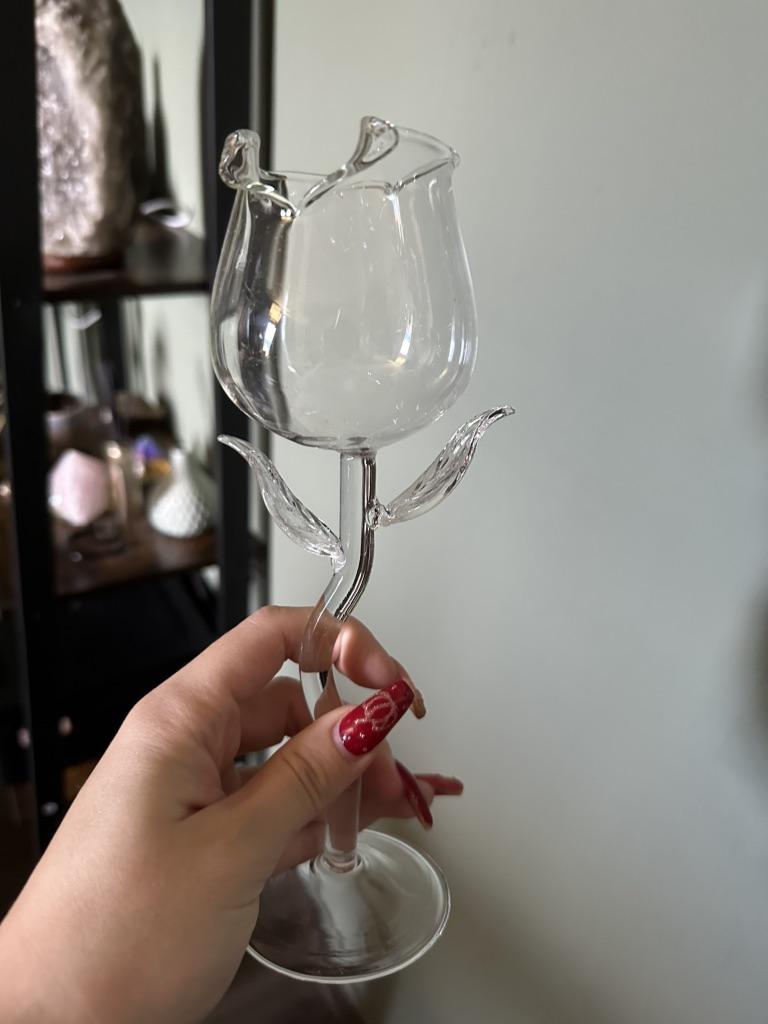 Weinglas, exquisiter stabiler Boden, transparenter Kelchbecher in Rosenform