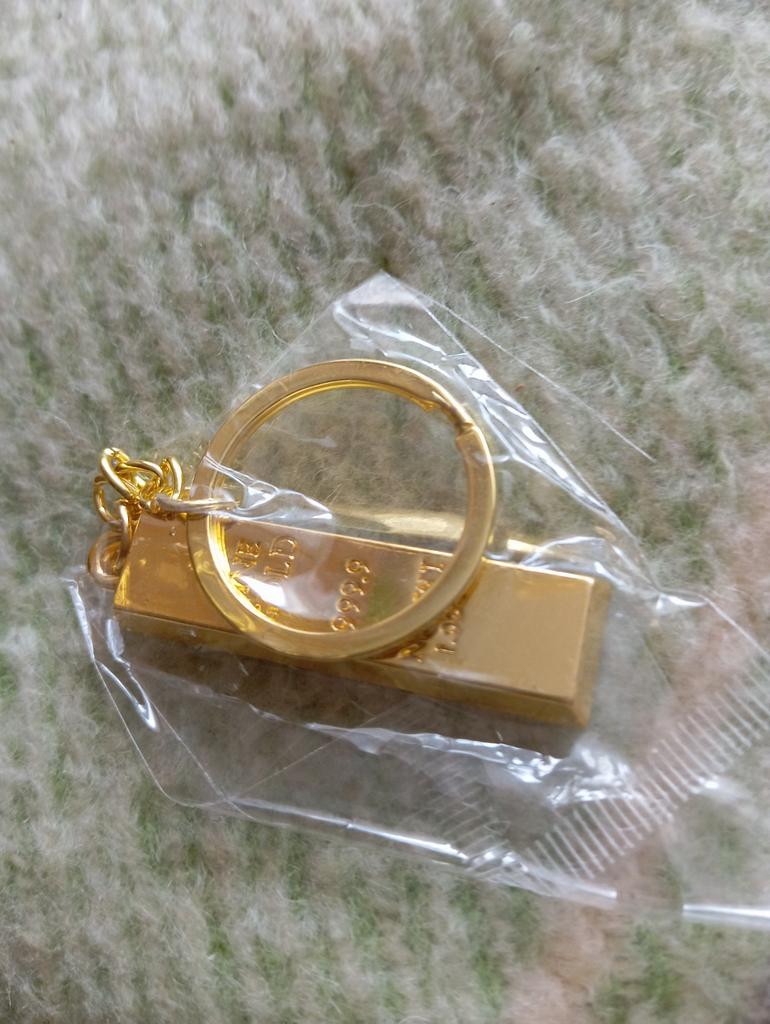 Ein Goldbarren wie ein echter, an einem Schlüsselbund aufgehängt, sieht sehr schön aus, sieht sehr schön aus, vielen Dank