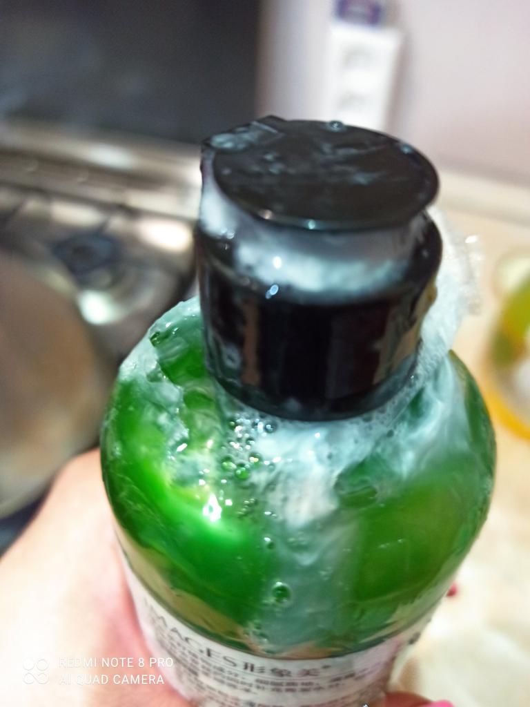 Das Shampoo ist ziemlich dick und der Geruch ist angenehm. Am Hals befindet sich ein zusätzlicher Stöpsel, der hatte einfach keine Chance auszulaufen.