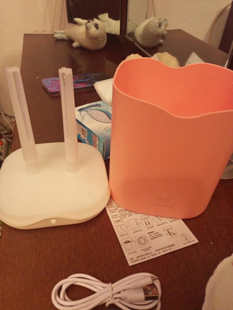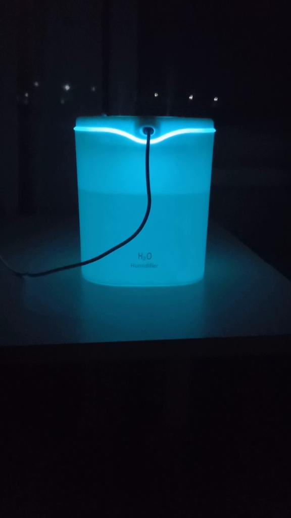 Sehr toller Luft befeuchtet Es passt sehr viel Wasser rein Einstellen das das Licht aus ist kann man auch Man kann auch einstellen ob von beiden Luft Löchern Luft kommt oder nur eins Lieferung war super Klein und fein