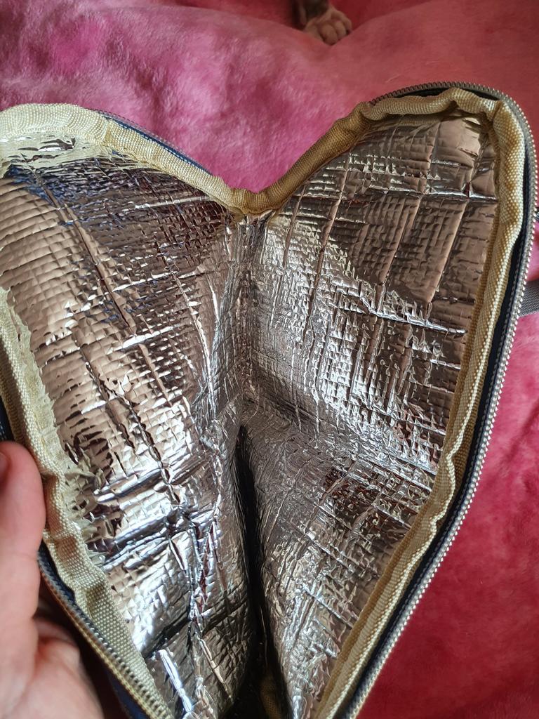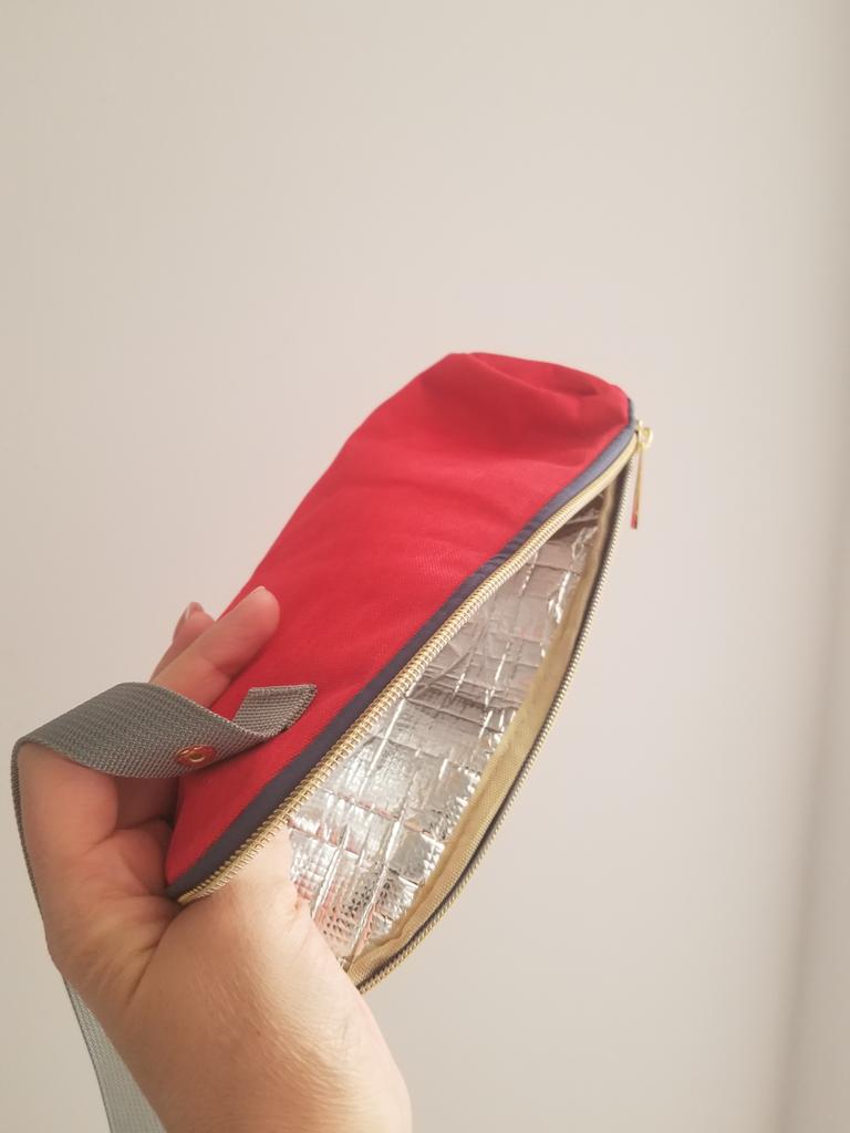 Mit einigen Nähfehlern an der Außen- und Innenschicht, aber der Reißverschluss ist gut vernäht und schließt gut. Es bleibt zu beweisen, ob es Hitze und Kälte hält. Der Griff lässt sich so toll zum Umschnallen an Rucksäcken und Karren lösen.