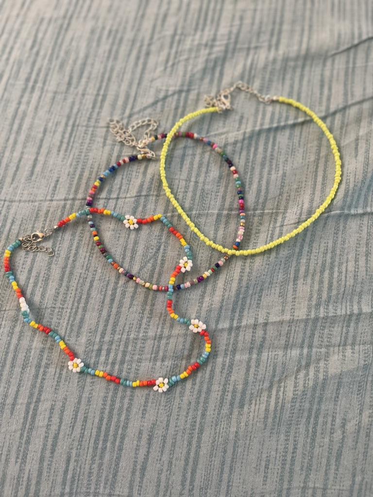 17 km trendige Perlenkette mit Perlen für Frauen, Bohemian-Stil, bunt, handgefertigt, kurze Gänseblümchen-Perlen-Halskette, Kragenschmuck