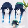 Genshin Impact Venti Cosplay Unisex 50 cm blaue Perücke Cosplay Anime Cosplay Zopfperücken hitzebeständige synthetische Perücken Halloween