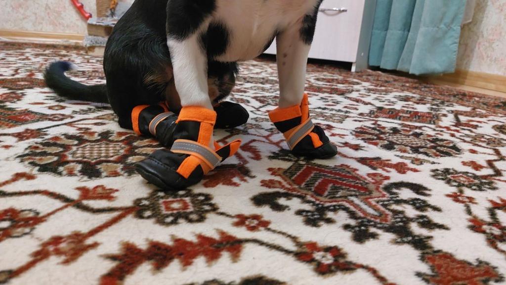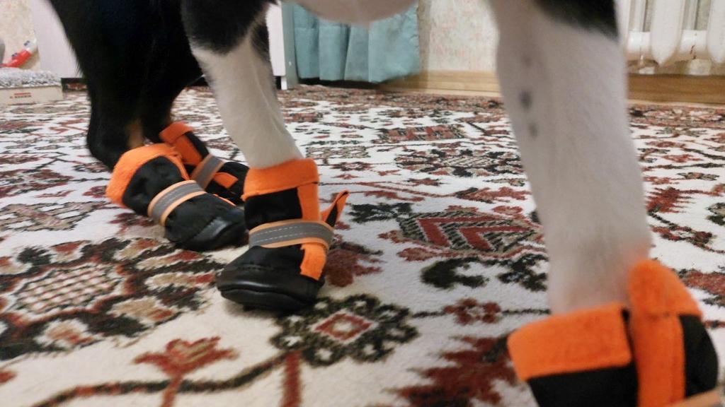 Hervorragende Qualität. Angenehm zu tragen. auf den Pfoten des Hundes.