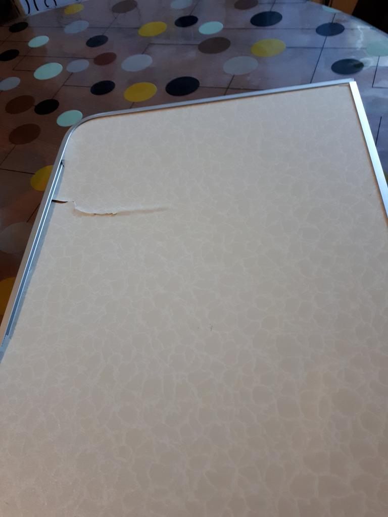 Der Tisch kam beschädigt an, die Tischplatte war kaputt.