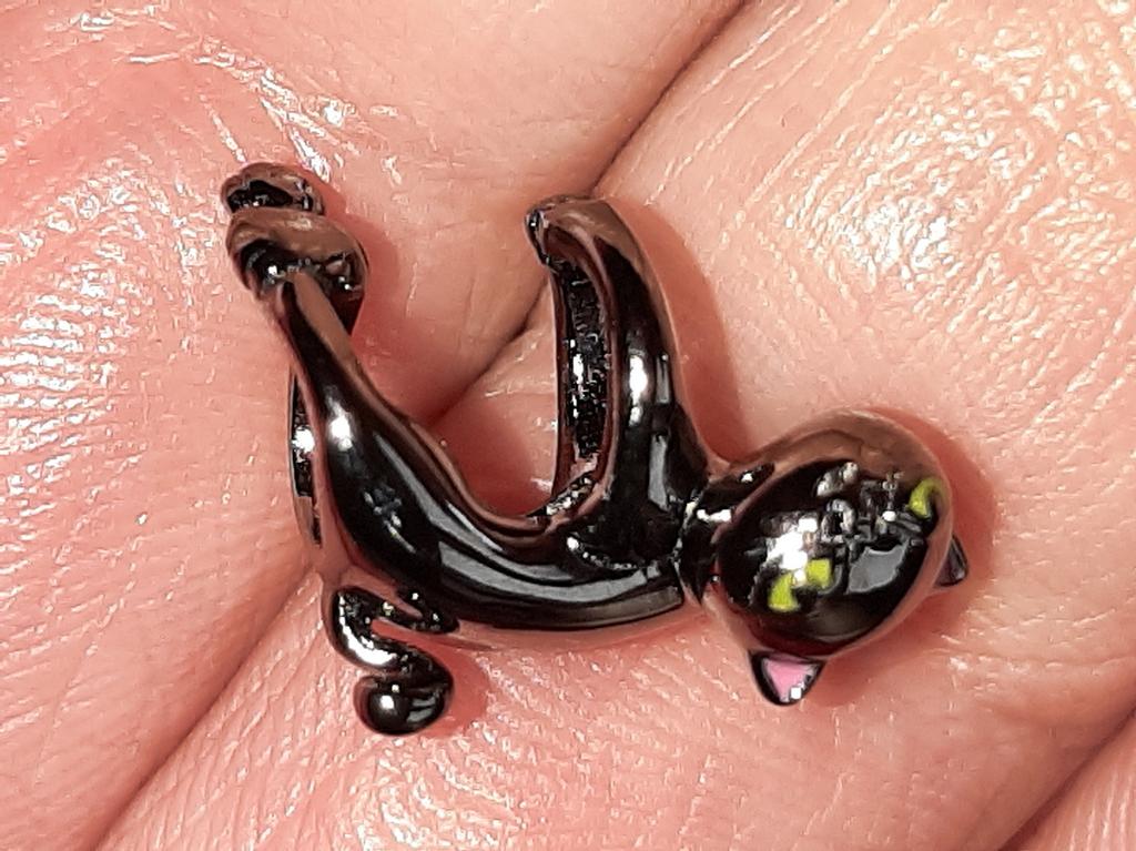 WOSTU Galvanik-Textur, schwarzes Gold, niedliche kleine schwarze Katze, 925er-Sterlingsilber, Perlen für Armband, Armreif, feiner Schmuck