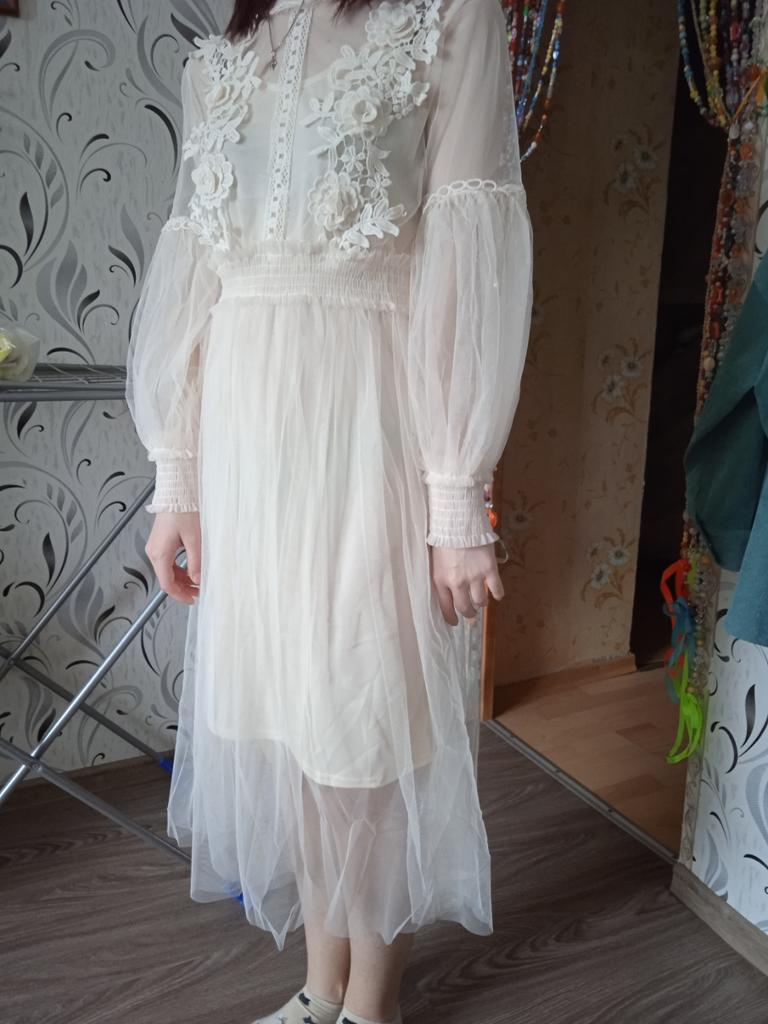 Bestellt war in Apricot bekommen in Weiß! Größe eher S-M, wenn man XL hat ist sehr eng und könnte das Kleid reißen! Sieht aber wie auf den Bildern aus!