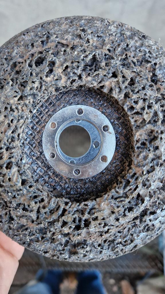 Eine gute Schleifscheibe, entfernt Farbe und Rost und setzt sich kaum zu.